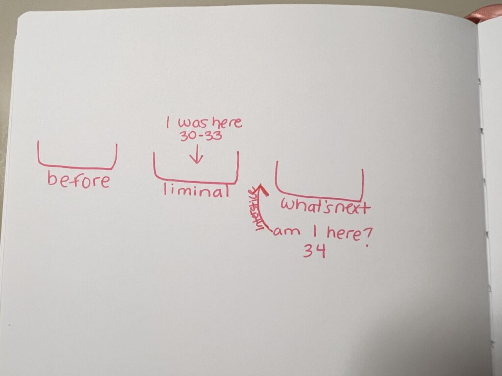 In my early 30s, I was definitely in the liminal space which is being in the in between of what was and what is to come.